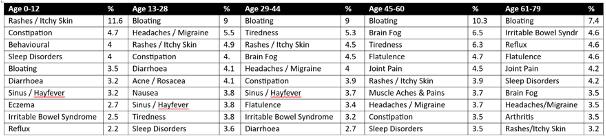 Dennis Hodges, Founder and CEO of FoodFit, says: “Our reports reflect people who had no diagnosed allergies or intolerances, but were suffering unexplained symptoms and underwent FoodFit testing through their naturopath. We aggregated these results to identify a real-world snapshot of how food incompatibility is troubling different age groups.